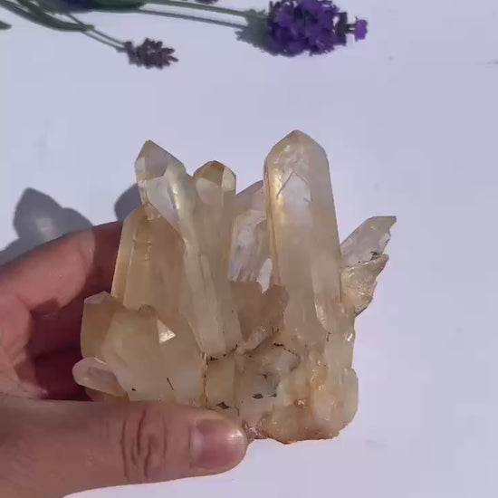 Dieser naturbelassene Bergkristall-Cluster besticht durch seine klare Kristallstruktur und die zarte, warme Färbung. Der leicht gelbliche Schimmer verleiht dem Stück eine besonders sonnige Ausstrahlung – perfekt für Wohnräume oder Meditationsecken.