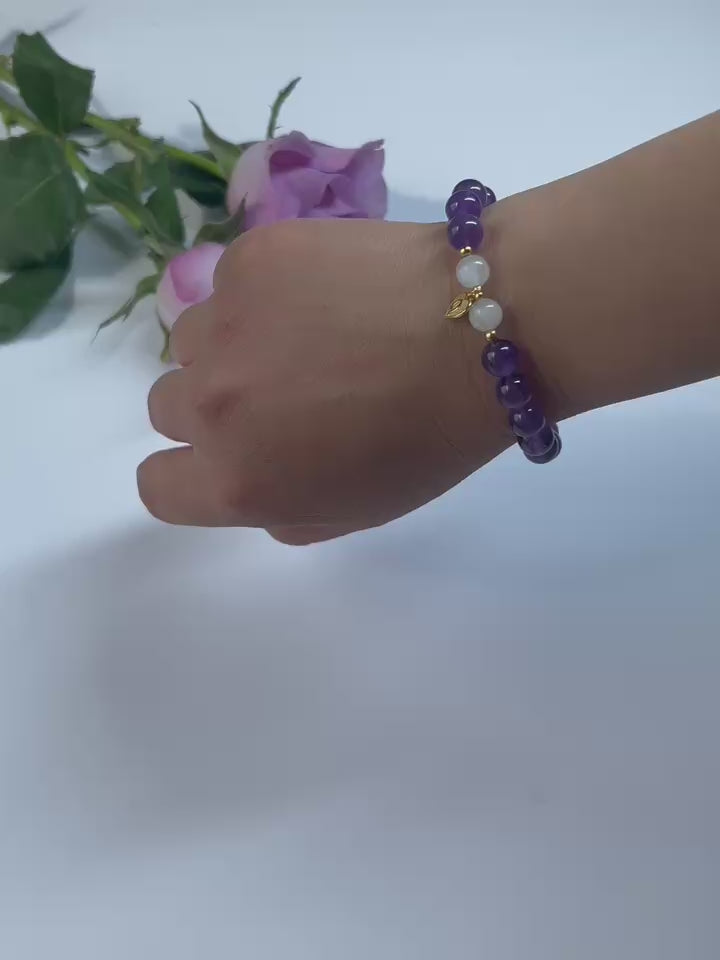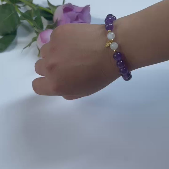 Dieses liebevoll handgefertigte Armband kombiniert die sanfte Energie des Mondsteins mit der beruhigenden Kraft des Amethysts. Der hochwertige NamensanhĂ€nger aus S925 Sterlingsilber macht jedes StĂŒck einzigartig und persönlich.